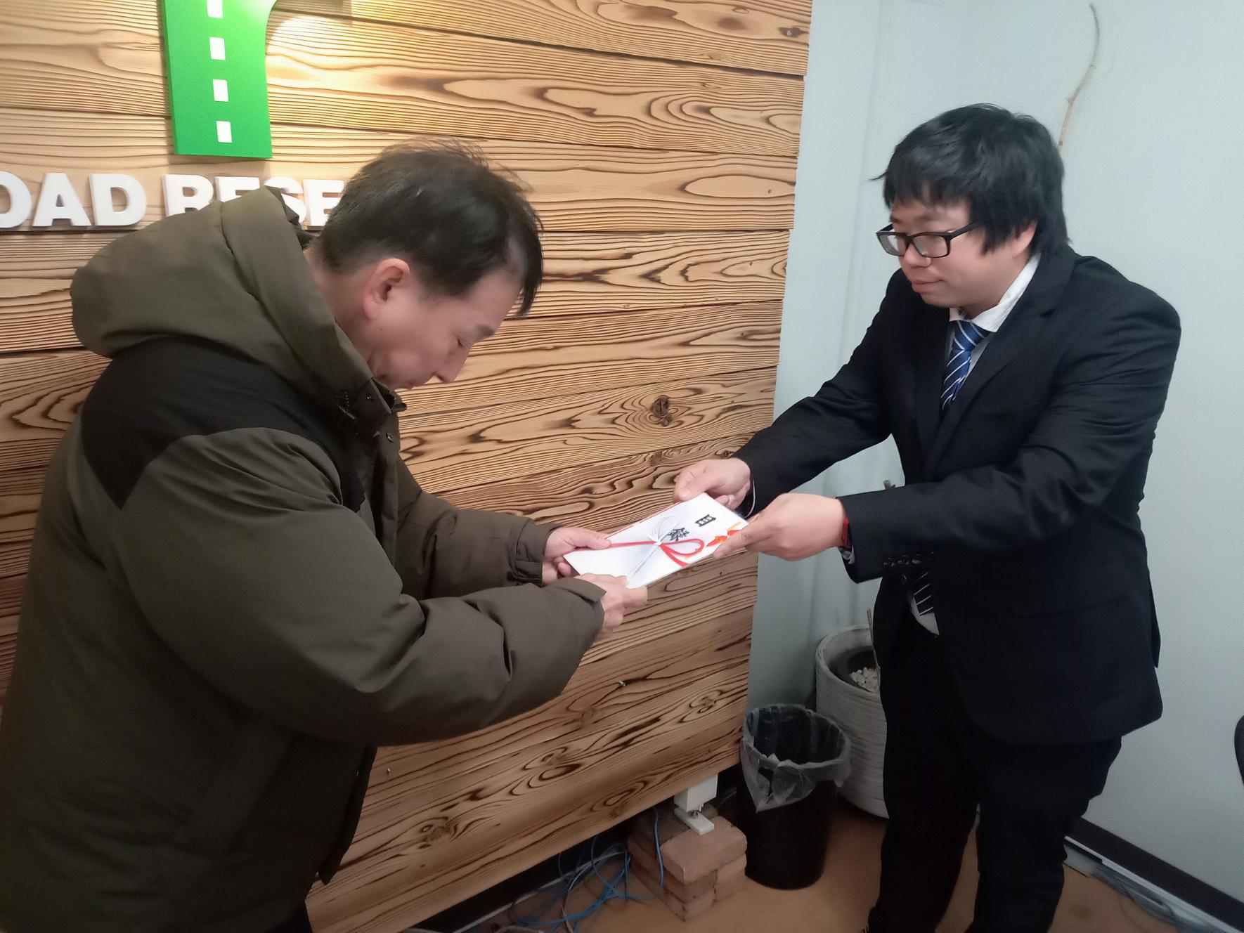 受渡しの場では、これまでの勤務への感謝の気持ちを込めて、贈呈を行いました。